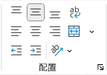 リボンの[ホーム]タブ → [配置]グループを確認しましょう。