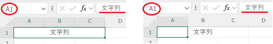 「セル結合」と「選択範囲内で中央」の見た目の違い