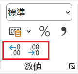 - 増やす:アイコンをクリックするたびに小数点以下の桁数を増加