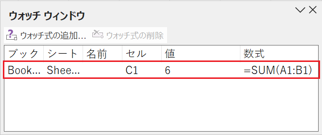 表示されたウィンドウで「ウォッチの追加」を押し、監視したいセルを選択します。